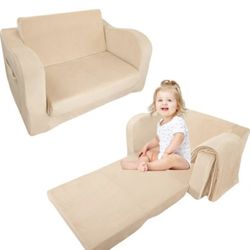 Kids Foam Couch with Blanket, Pre-Assembled Toddlers 2-in-1 Convertible Sofa, Indoor Foadable Lounger Chair & Flip Open Floor Bed for Boys & Girls (Kh$24Ontario, CA
