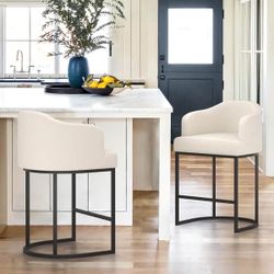 Bar Stools Set of 2, 26 inch Modern Upholstered Fabric Counter Height Barstools, Kitchen Island Chairs with Black Metal Legs for Dining Room/Kitchen I$160Riverside, CA
