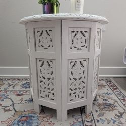 White Carved Wood Accent Table/ Bohemian Side Table$40Corona, CA