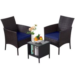 3 Pieces Patio Furniture Sets Outdoor PE Rattan Small Patio Furniture Set with Soft Cushion and Glass Coffee Table with Storage for Garden Backyard Po$70Anaheim, CA