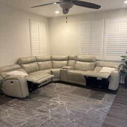 Cream White Leather Sectional Couch Electric 4 Recliners USB Ports, Head Adjusts Costco Super Nice$1,000Arrowhed Farm, CA