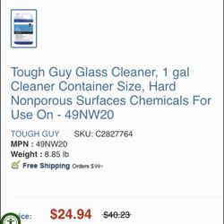 Tough Guy Glass Cleaner, 1 gal Cleaner Container Size, Hard Nonporous Surfaces Chemicals For Use On - 49NW20$20Los Angeles, CA