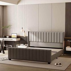 Like New Grey Velvet Upholstered King Size Bed Frame Vertical Channel Headboard & Footboard (See pic$145Los Angeles, CA