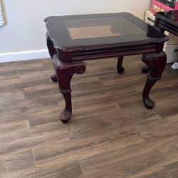 Coffee Table Carved Wood Glass Top 42x42$150Beverly Hills, CA