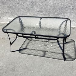 (Brand New) $80 Large Outdoor Patio Metal Table 59x36x28 Inches Tempered Glass w/ Umbrella Hole $80El Monte, CA