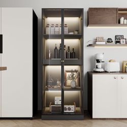 23.6W ,Glass Display Cabinet with LED Lights Tempered Glass Curio Cabinet with Pull-Out Shelf for China Liquor Collectibles ,Black$100El Monte, CA