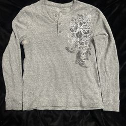 y2k grey affliction waffle knit henley long sleeve$10South Gate, CA