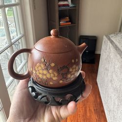 Chinese Yixing Style Clay Teapot with Carved Wooden Stand$30West Hills, CA