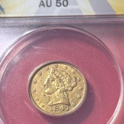 1847 $5 Gold Liberty Half Eagle ANACS AU50 Super Early Date ! $1,350Redondo Beach, CA