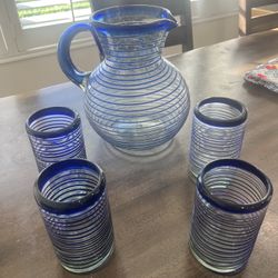 Mexican Hand Blown Glass Pitcher Set $25Pico Rivera, CA
