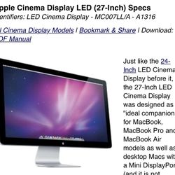 Apple Cinema Display LED 27 Inch$250Tujunga, CA