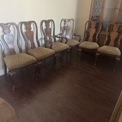 Set of six vintage Queen Anne-style dining chairs, including two armchairs and four side chairs.$180Glendale, CA
