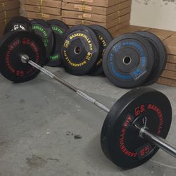 Bumper Plate Barbell set 260 lbs + 45 lb Olympic Bar Brand New Still In The Box! $450Los Angeles, CA