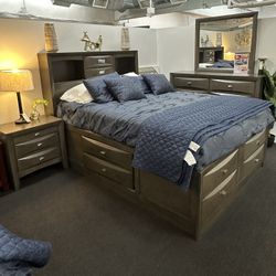 BEDROOM SET, 4 PC QUEEN BED FRAME WITH STORAGE, DRESSER, MIRROR AND NIGHTSTAND -NEW-$1,099Gardena, CA