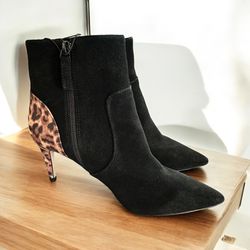 New Violet & Red Quintin Black and Leopard Suede Heeled Booties Sz 8 1/2$45Castaic, CA