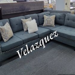 ✅️"2 pc Grey color like velvet fabric sectional sofa with chaise and nail head trim"✅️$272Montebello, CA