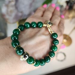 Hunter green JADE Beaded Bracelet with Gold Skull Accent$35Los Angeles, CA