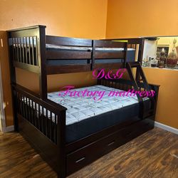 Twin / Full Bunk Bed Espresso With Drawers 81"W x 58"D x 65"H Matte Included Litera Full Twin Con Cajones. Color Cafe Expresso Colchones Incluido$850Los Angeles, CA