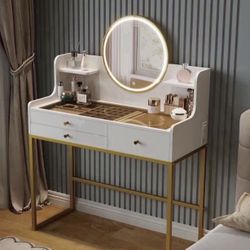 Makeup Vanity Desk with Mirror and Lights, Glass Top Vanity Desk with 3 Drawers & 2 Storage Shelves, Bedroom Dressing Table with Power Outlet, 3 Light$120El Monte, CA