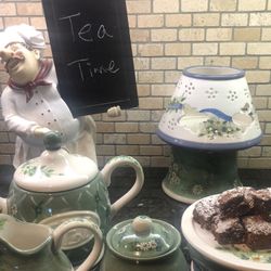 The vintage herb collection ceramic tea set ( tea pot, creamer and sugar, hurricane candle holder and dessert pedestal plate)$45Los Angeles, CA