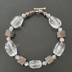 Genuine Quartz Sterling Silver Square Links AB Aurora Borealis Beads Bracelet$80Los Angeles, CA