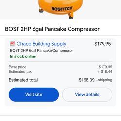 Air Compressor Bostitch 6 Gallon$69Pasadena, CA