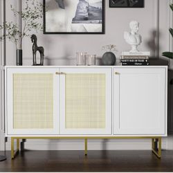 Sideboard Buffet with Rattan Doors, Storage Cabinet with 3 Doors, Coffee Bar Cabinet with Golden Legs, Cupboard Console Table, Liquor/Accent Cabinet,$99San Gabriel, CA