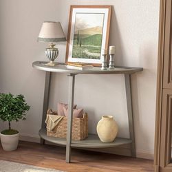2-Tier Glass Console Table, Semi-Circular MDF Entryway Table with Storage Shelf, Modern Wood Sofa Side Table for Bedroom Living Room Hallway, Antique $50El Monte, CA