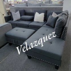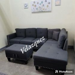 ✅️✅️3 pc grey polyfiber fabric sectional sofa reversible chaise and ottoman✅️$398South Gate, CA