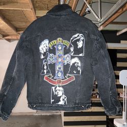 Gun’s N Roses Logo Distressed Denim Embroidered Blue Jean Jacket Size S $55Los Angeles, CA