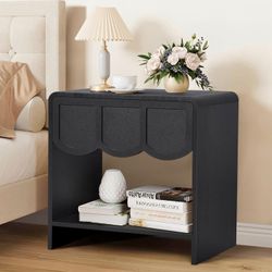 New Night Stand, Mid Century Modern Farmhouse Wood Nightstand with Wave Panel Drawer, Bed Side End Table - Black$50Los Angeles, CA