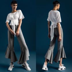 Jonathon Simkhai x Carbon38 cropped high rise fleece gathered flare ruffle pants$90Redondo Beach, CA