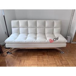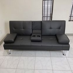 (New) $155 Futon Folding Sofa Bed 65x30x31” PU Leather w/ Cup Holder $155Cty Of Cmmrce, CA