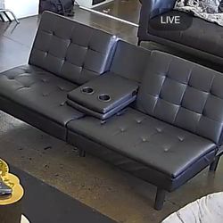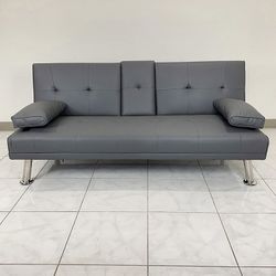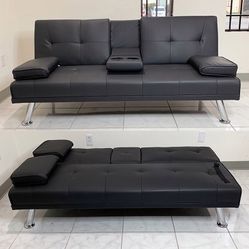 Brand New $155 Futon Folding Sofa Bed 65x30x31” PU Leather w/ Cup Holder $155Cty Of Cmmrce, CA