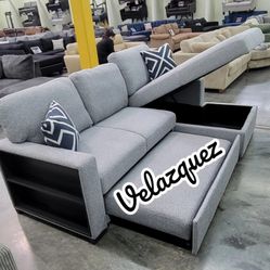 ✅️✅️2 pc Grey boucle fabric sectional sofa with pop up sleep area and storage chaise drop down tray table wireless charging✅️✅️✅️$498Inglewood, CA