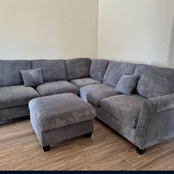 ✅️✅️ 4pc for grey corduroy fabric upholstered sectional sofa with ottoman ✅️✅️$425Glendale, CA