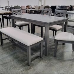 ✅️✅️6 pc grey finish wood dining table set padded seat chairs and bench ✅️ $298Downey, CA