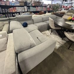 ✅️✅️4 pc Grey boucle fabric sectional sofa with storage chaise and love seat and pop up sleep area in center drop down tray tables✅️✅️✅️$748West Hollywood, CA