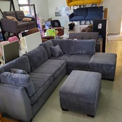 New Gray Corduroy Comfortable Sectional Sofa Couch Set Special With Ottoman Come Visit Our Store In Paramount $699Lynwood, CA