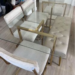 Cream Gold Luxury Glass Dining Set For 6$990Los Angeles, CA
