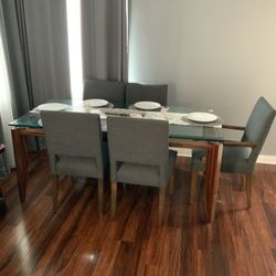 Big Glass Dining Table Birch Chairs Set for 6$599Los Angeles, CA