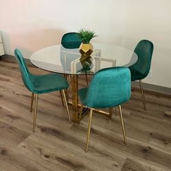 Stylish Emerald Green Gold Round Kitchen Table Set for 4$420Culver City, CA