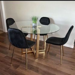 Stylish Black Velvet Gold Round Kitchen Table Set for 4$420West Los Angeles, CA