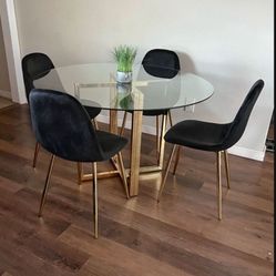 Stylish Black Velvet Gold Round Kitchen Table Set for 4$420Los Angeles, CA