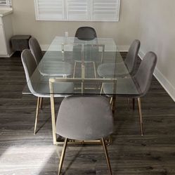 Glass Rectangle Kitchen Table And 4 Gray Velvet Chairs$390Culver City, CA