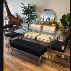 Gold Glass Dining Table Set For 6 People With Velvet Chairs$599Los Angeles, CA