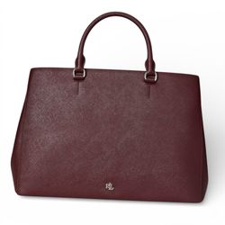 NWT Lauren Ralph Lauren Crosshatch Leather Large Hanna Satchel Dark Garnet$265Castaic, CA