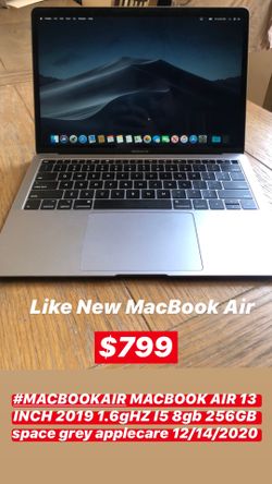 MacBook Air 2018/19 1.6/8/256 Applecare 12/14/2020$799Los Angeles, CA