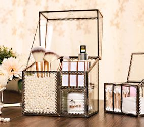 JCMAN Makeup Organizer Glass Antique Handmade Makeup Brush Holder,Glass Makeup Storage Brass Cosmetic Organizer$35Bradbury, CA