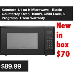 New in box kenmore 1.1 cu ft microwave 1000w black $70 cash only pick up East Palmdale$70Palmdale, CA